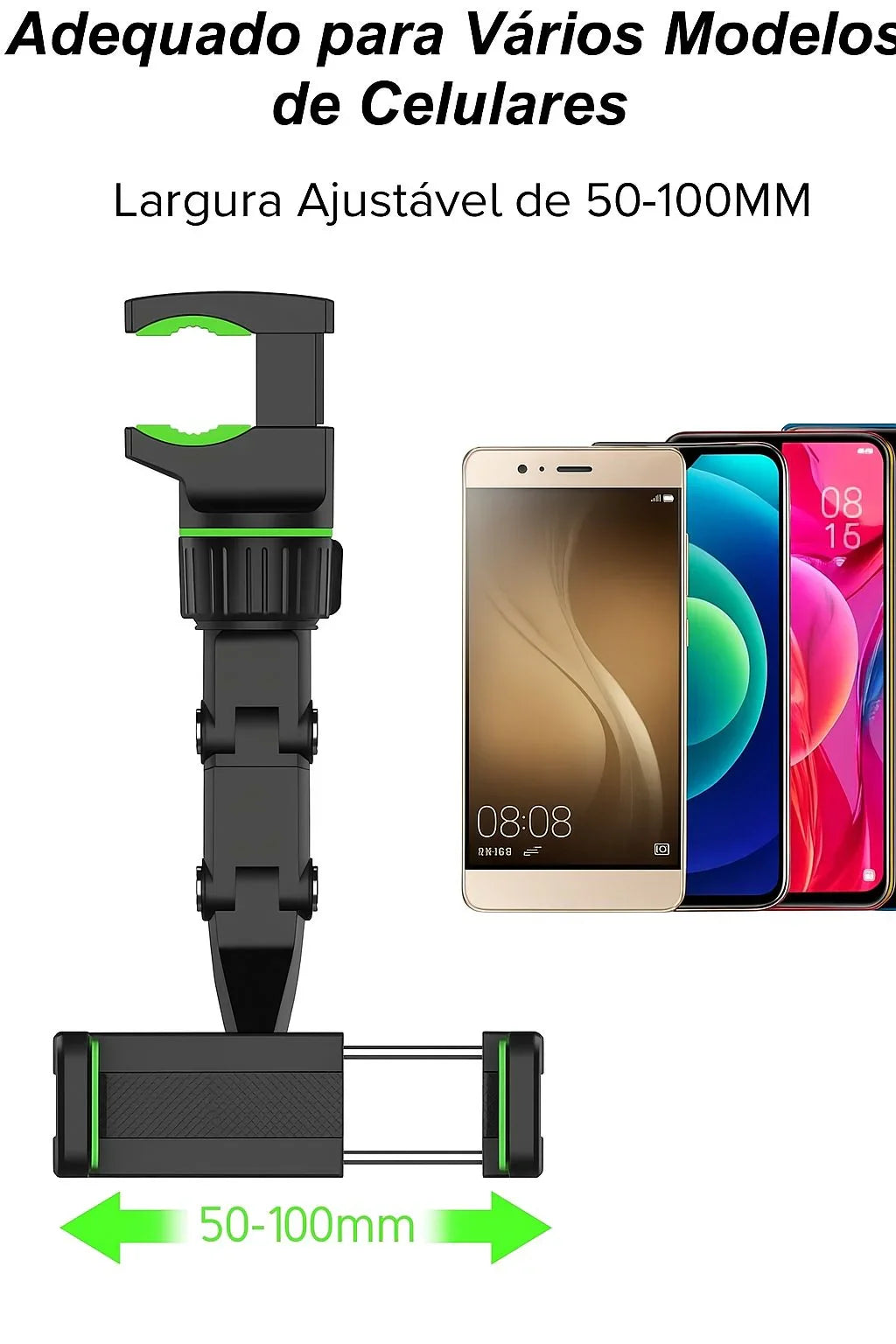 Gire, Ajuste e Dirija com Segurança – Suporte para Celular com Fixação no Retrovisor e Giro 360º